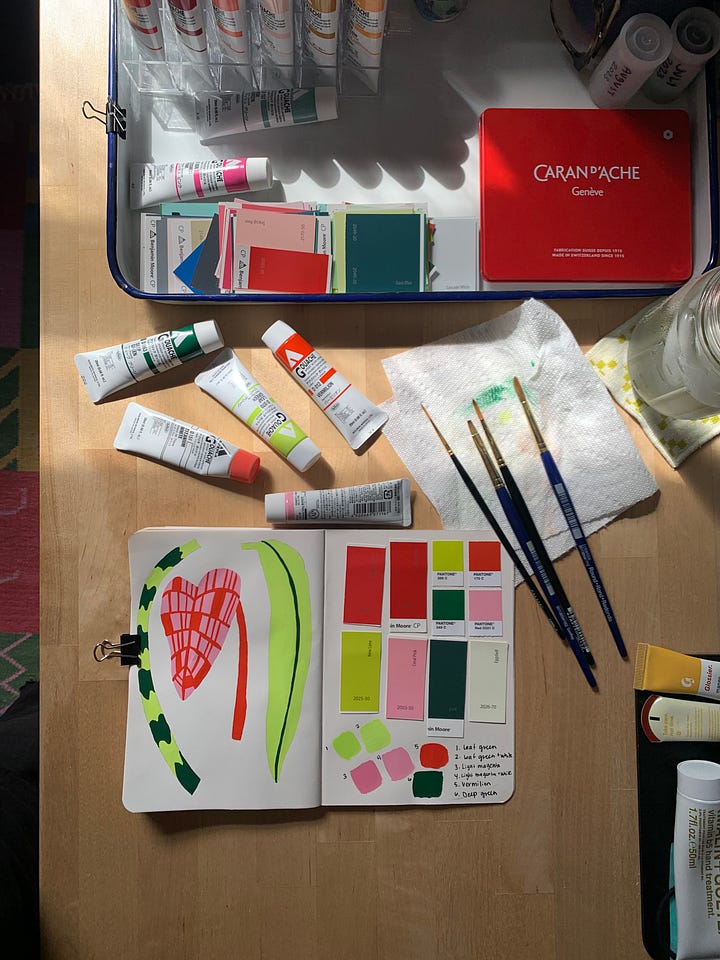 I love seeing other artist’s sketchbooks whether that’s Picasso’s sketchbook on display behind glass or a sketchbook tour on Instagram. It’s a window into their creative practice. In design school, there was a huge emphasis on process. My professors never wanted to see a finished project without seeing the path we took to get there.